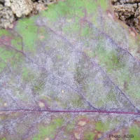 Symptômes : Apparition d’un feutrage blanc d’aspect poudreux sur le limbe et le long des nervures. Jaunissement des feuilles en cas de fortes attaques.
