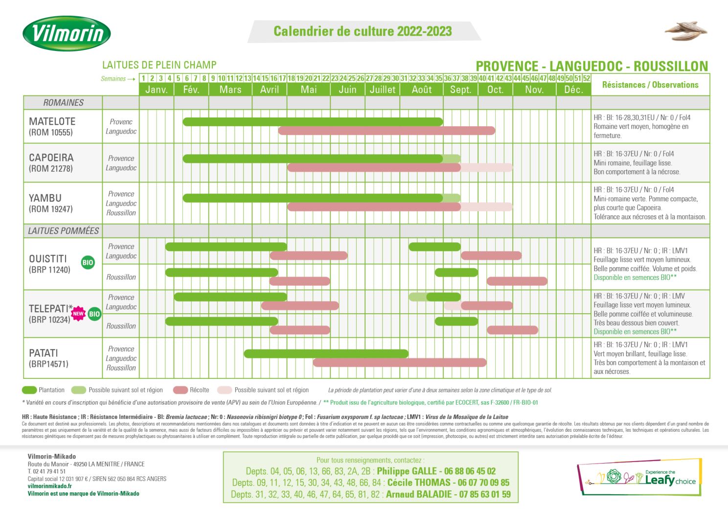 Retrouverez les calendriers de culture 2022-2023 pour notre gamme laitues de plein champ édités pour chaque zone :